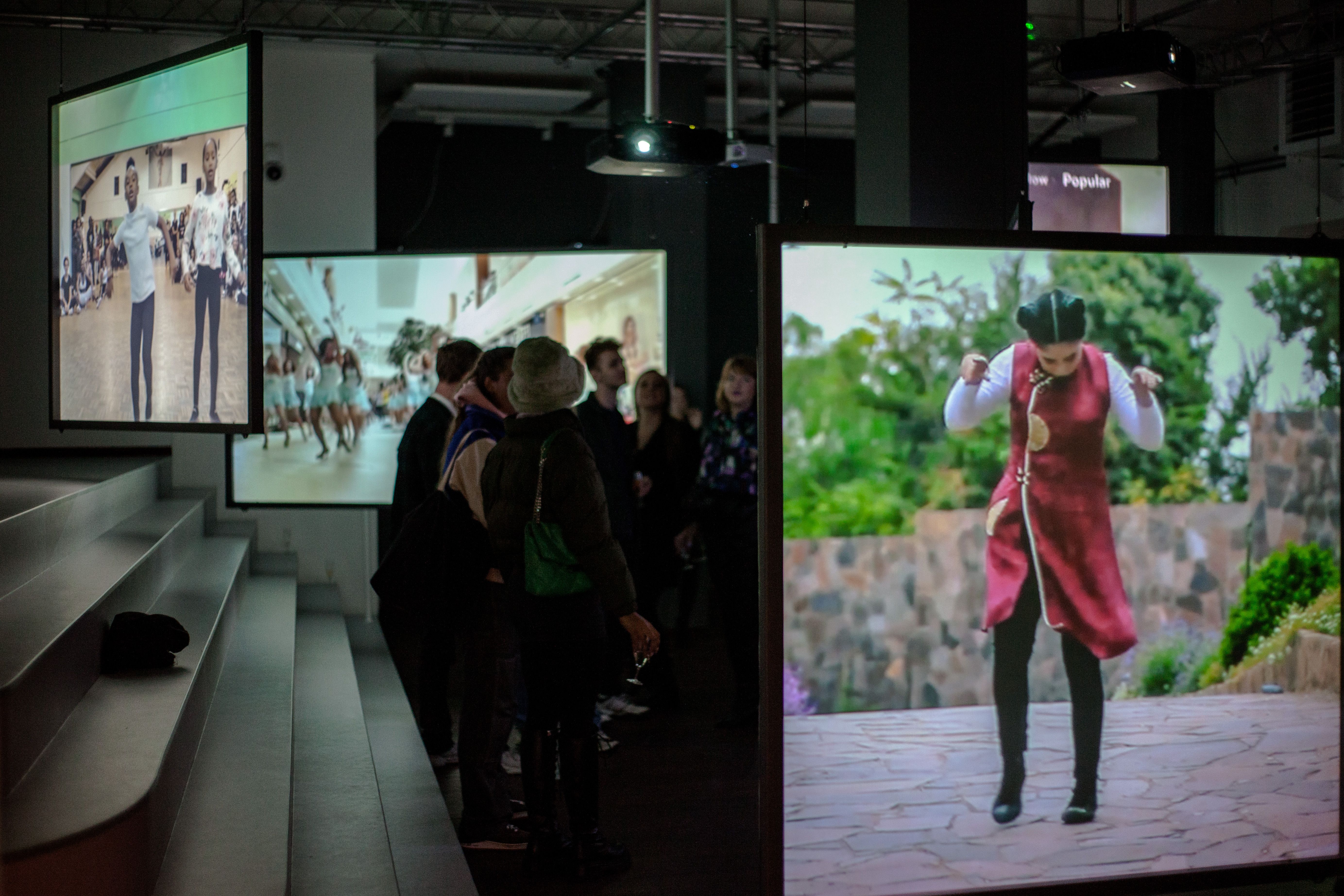 The dance-conclave Universal Tongue leads us through the jungle of the internet. The work explores how dance has developed throughout history as part of our global media culture, and how it nowadays manifests online. The rousing installation is based on 32 hours of video presenting thousands of different dance styles, collected from YouTube and Instagram, and selected by a team of 50 researchers from all over the world.