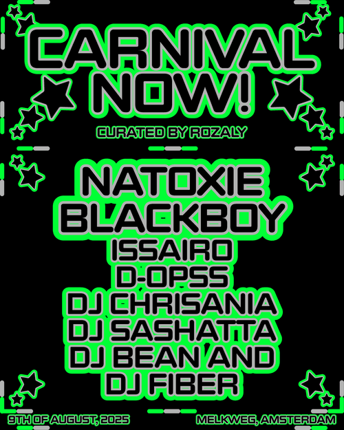Carnival NOW! is een nieuwe clubnacht die de volgende generatie Caribische sounds naar het Nederlandse nachtleven brengt. Geworteld in de carnavalscultuur maar met de blik op de toekomst, viert deze avond wat er nú borrelt in het Caribisch gebied – van krachtige soca en Bouyon tot Dennery Segment en experimentele genre-mixes.