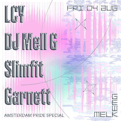 Tijdens Pride gooien we alle remmen los met een tegendraadse clubnacht zonder genrehokjes. We vieren elkaar met een line-up van gelijkgestemde artiesten die elkaar ergens vinden op de kruising van opzwepende UK beats, vuige electro, breakbeats en snoeiharde rave trax. De speciale gasten van de avond LCY (Londen) en DJ Mell G (Hamburg) staan bekend om hun duistere en gedeconstrueerde sets vol onverwachtse zijsprongen. Local genre-blenders Slimfit en Garnett maken de nacht de compleet met hun eigenzinnige selecties van dub en garage tot jungle. Deze nacht is voor de dansers die houden van avontuur.