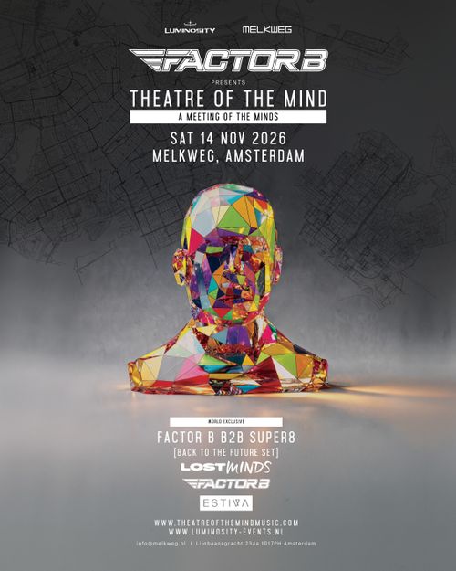Ook brengen Factor B en Lostly hun gezamenlijke project Lost Minds naar Amsterdam. Na hun indrukwekkende mainstage-debuut op Dreamstate in Los Angeles is dit hun enige Nederlandse show dit jaar — een showcase van vooruitstrevende, pure trance op het hoogste niveau.