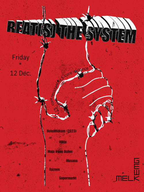 Op 12 december vond het eerste programma van deze lichting Milk Made plaats. Onze UP en Cinema stonden die avond volledig in het teken van verzet. Net zoals verzet in vele vormen komt, gold dat ook voor het programma. Met onder andere optredens van Hiltje, rockband Supermarkt en een vertoning van de film Hotel Mokum (2023), een documentaire over het collectief die in 2021 Hotel Marnix kraakte, werd een breed spectrum aan kunst- én verzetsvormen verkend.
